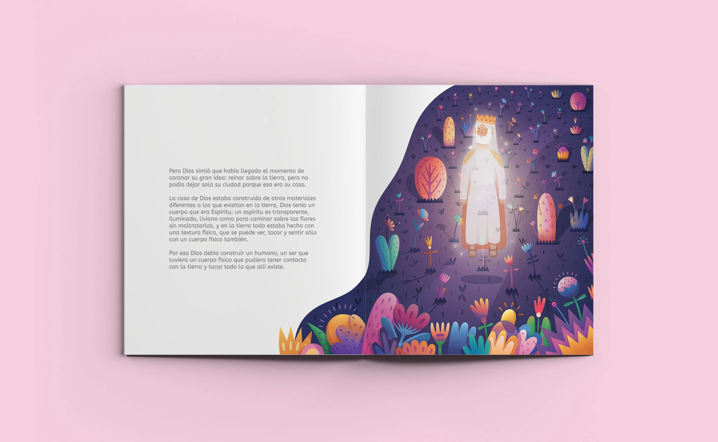 La Gran Idea de Dios (God’s Great Idea) is a children’s book that narrates the creation of the world as depicted in Genesis, the first book of the Bible. In 2018, I was commissioned to illustrate the book, resulting in fifteen illustrations that include both single pages and full spreads. The book was awarded in the Latin American Design Awards in the student/illustration category.